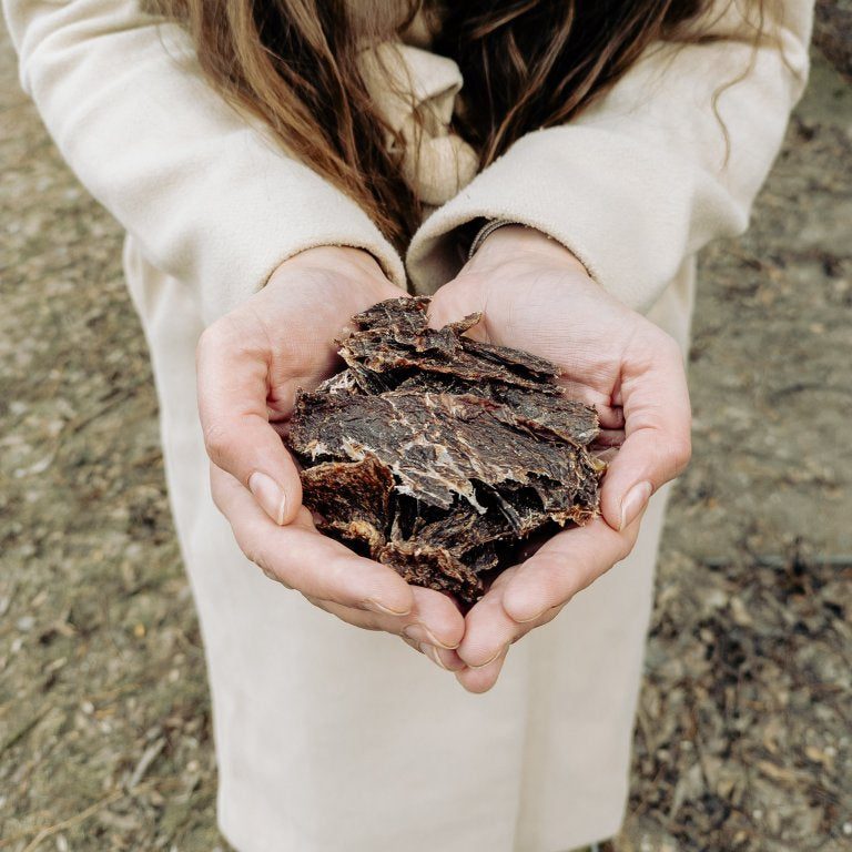 Složení : Hovězí zadní kýta 100 % (sušené v potravinářské kvalitě).