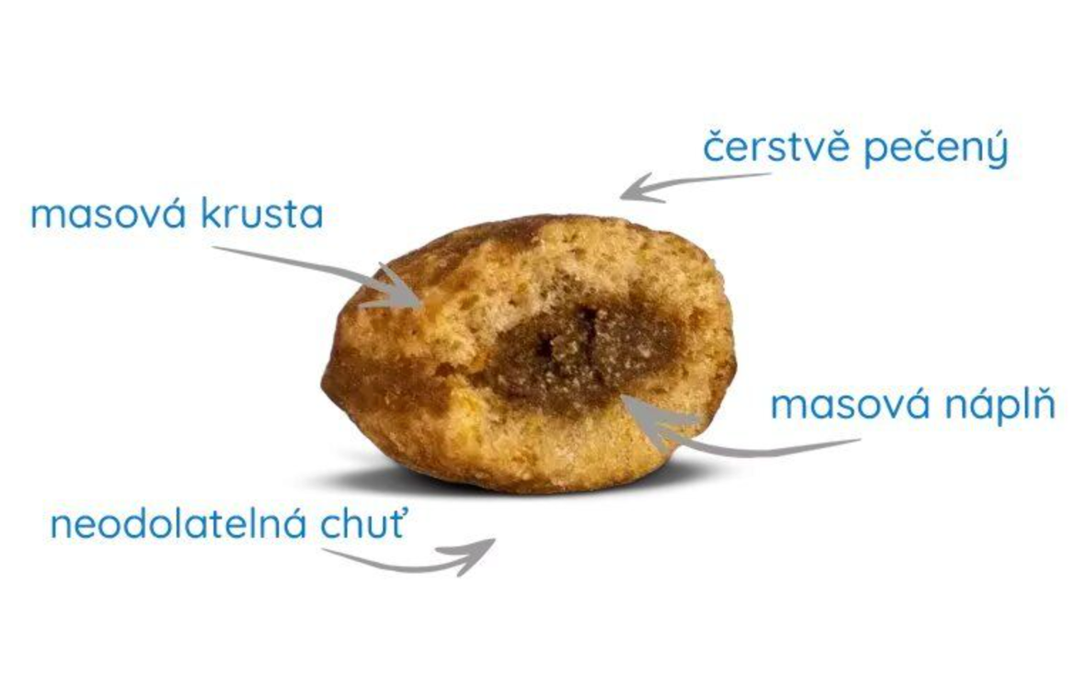 Složení: obiloviny, bílkovinné extrakty rostlinného původu, tuky a oleje, kuřecí moučka, pšenice, mléko a mlékárenské výrobky (min. 4 % sýr), minerální látky.