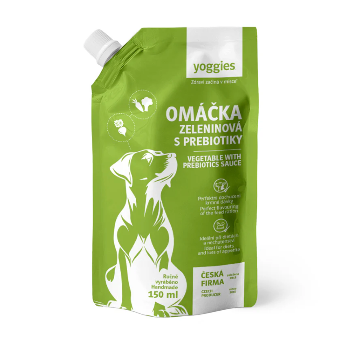 Omáčka pro psy s kvalitní zeleninou a zcela bez masase skvěle hodí jako doplněk potravy, příloha i součást diet pro psy s onemocněním jater, ledvin, různými alergiemi. Pro obézní psy, může být skvělou součástí diety v kombinaci s granulemi BARF Plus. U psů trpících nechutenstvím například po operacích jsou omáčky Yoggies používány k "ozvláštnění" krmné dávky.