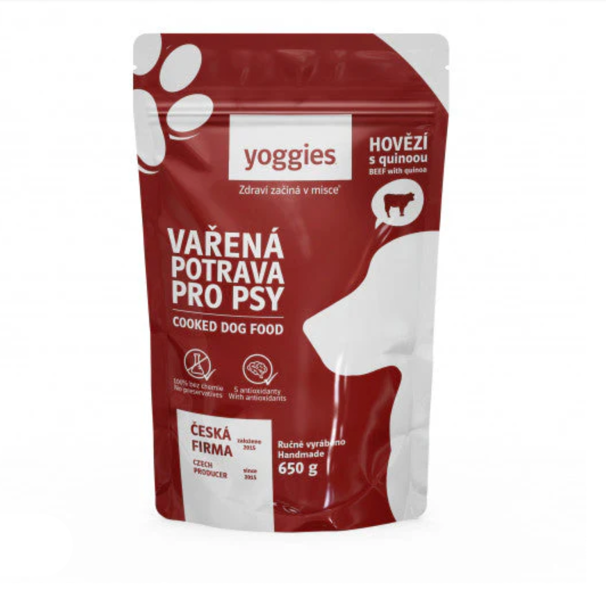 Yoggies Vařená potrava pro psy – hovězí maso s quinoou 650g