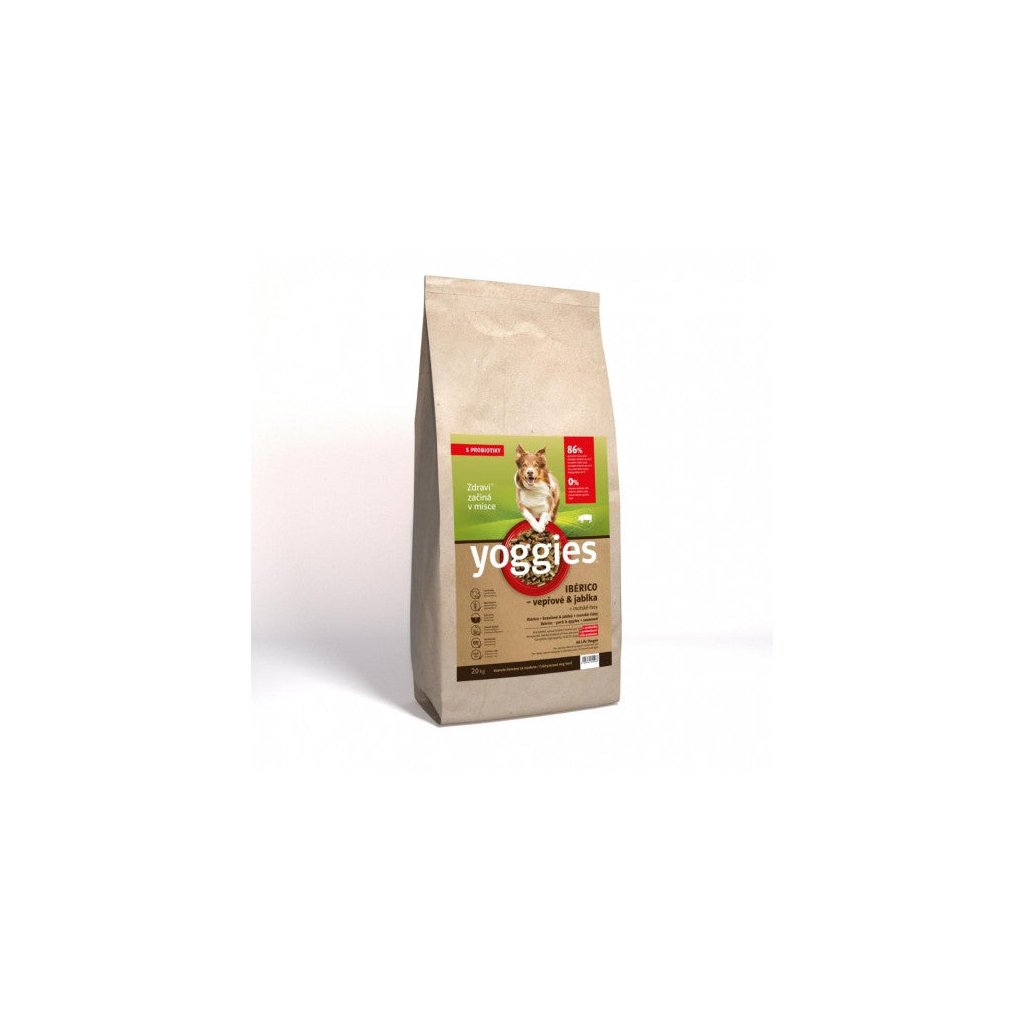 20kg Yoggies Ibérico vepřové maso s jablky, granule lisované za studena s probiotiky