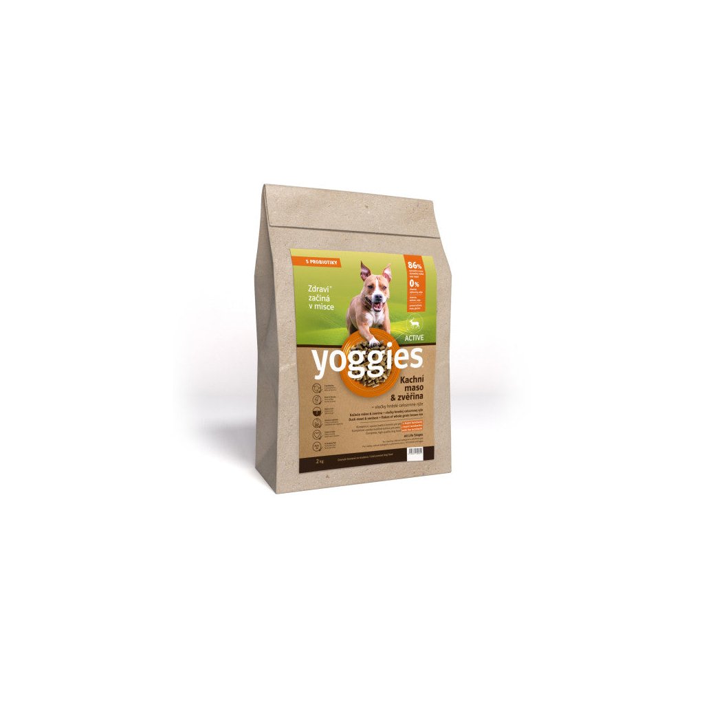 2kg Yoggies Active Kachní maso&zvěřina, granule lisované za studena s probiotiky