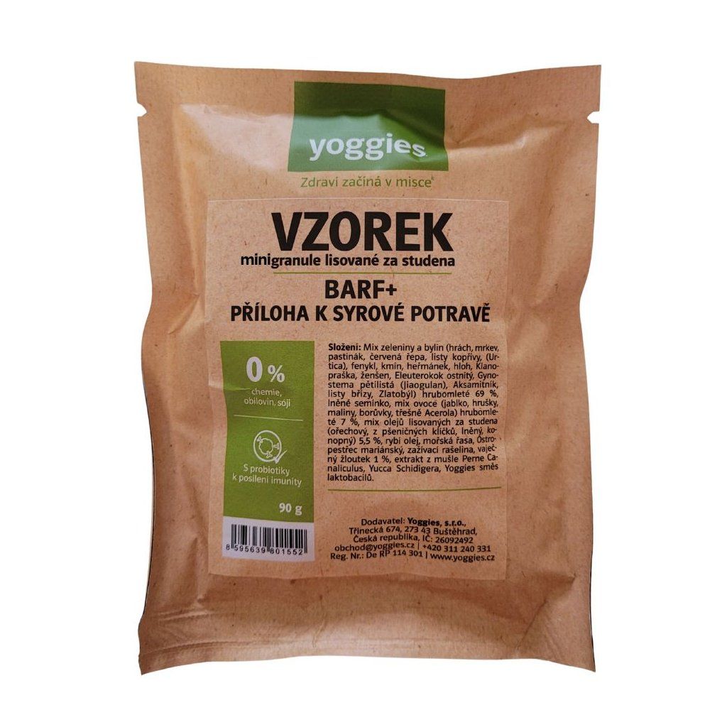 90g Yoggies Vzorek BARF+ příloha k syrovému masu, minigranule lisované za studena s probiotiky