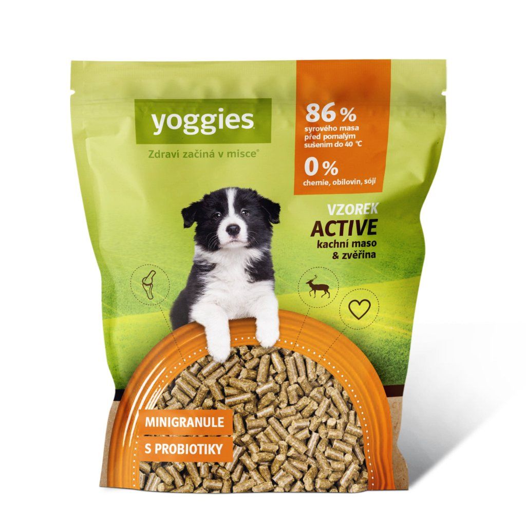 90g Yoggies Vzorek Active kachní maso&zvěřina, minigranule lisované za studena s probiotiky