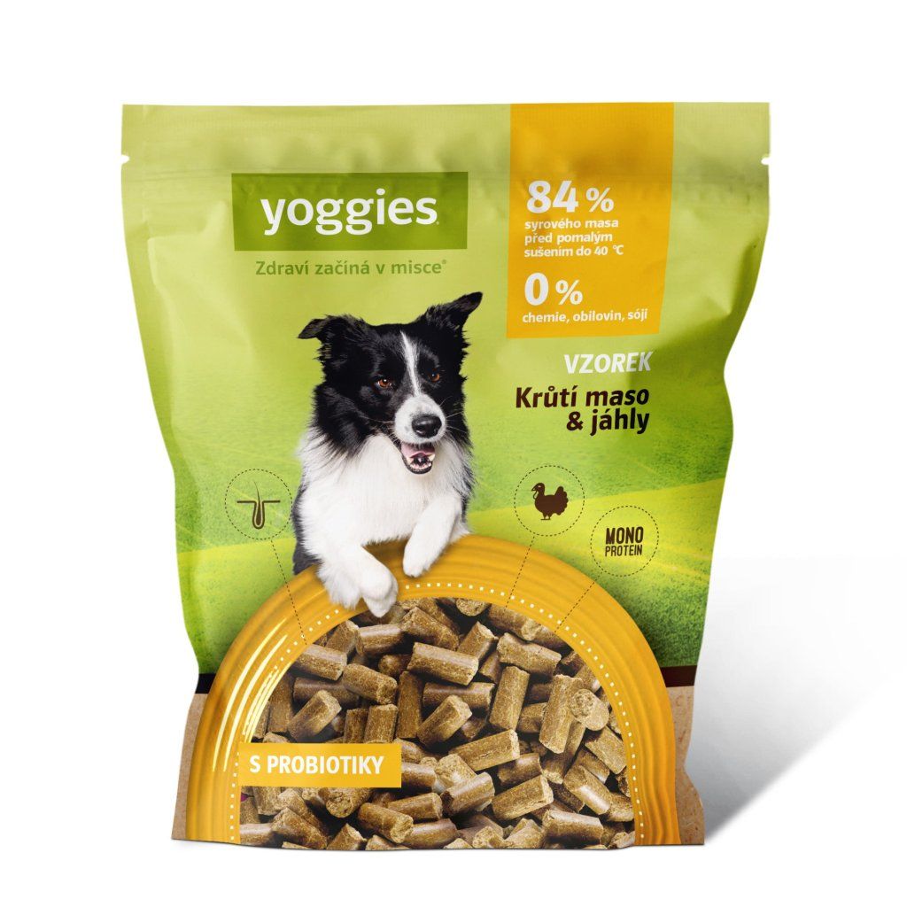 90g Yoggies Vzorek krůtí maso&jáhly, granule lisované za studena s probiotiky