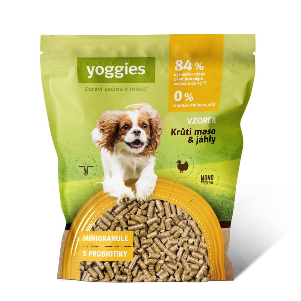 90g Yoggies Vzorek krůtí maso&jáhly, minigranule lisované za studena s probiotiky