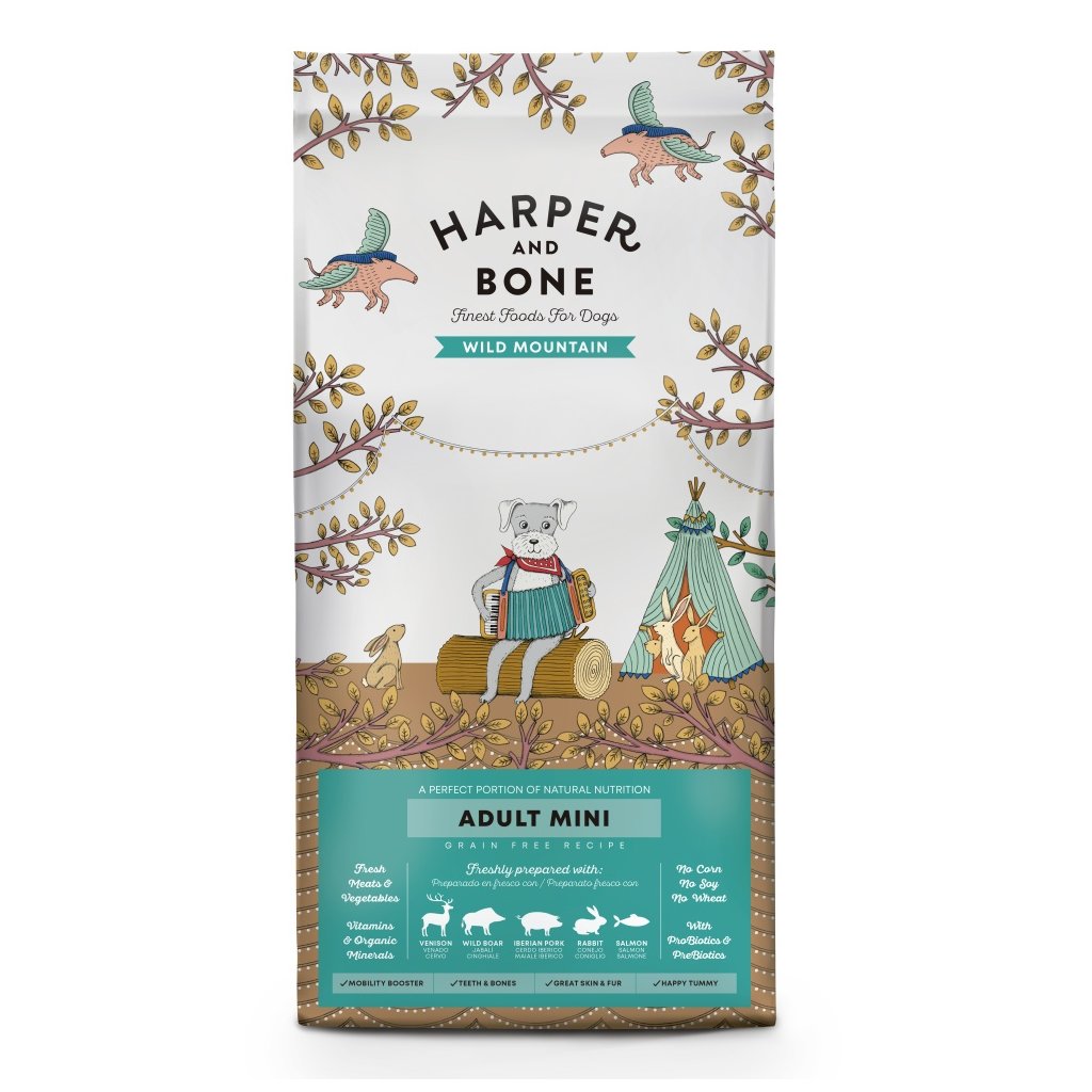 Harper and Bone Dog Adult Mini divoké hory složené pouze z nejkvalitnějších surovin s vysokým podílem masa, přídavkem superpotravin a čerstvé zeleniny, zaručující prospěšné živiny a přirozenou chuť pro dokonale vyváženou výživu.