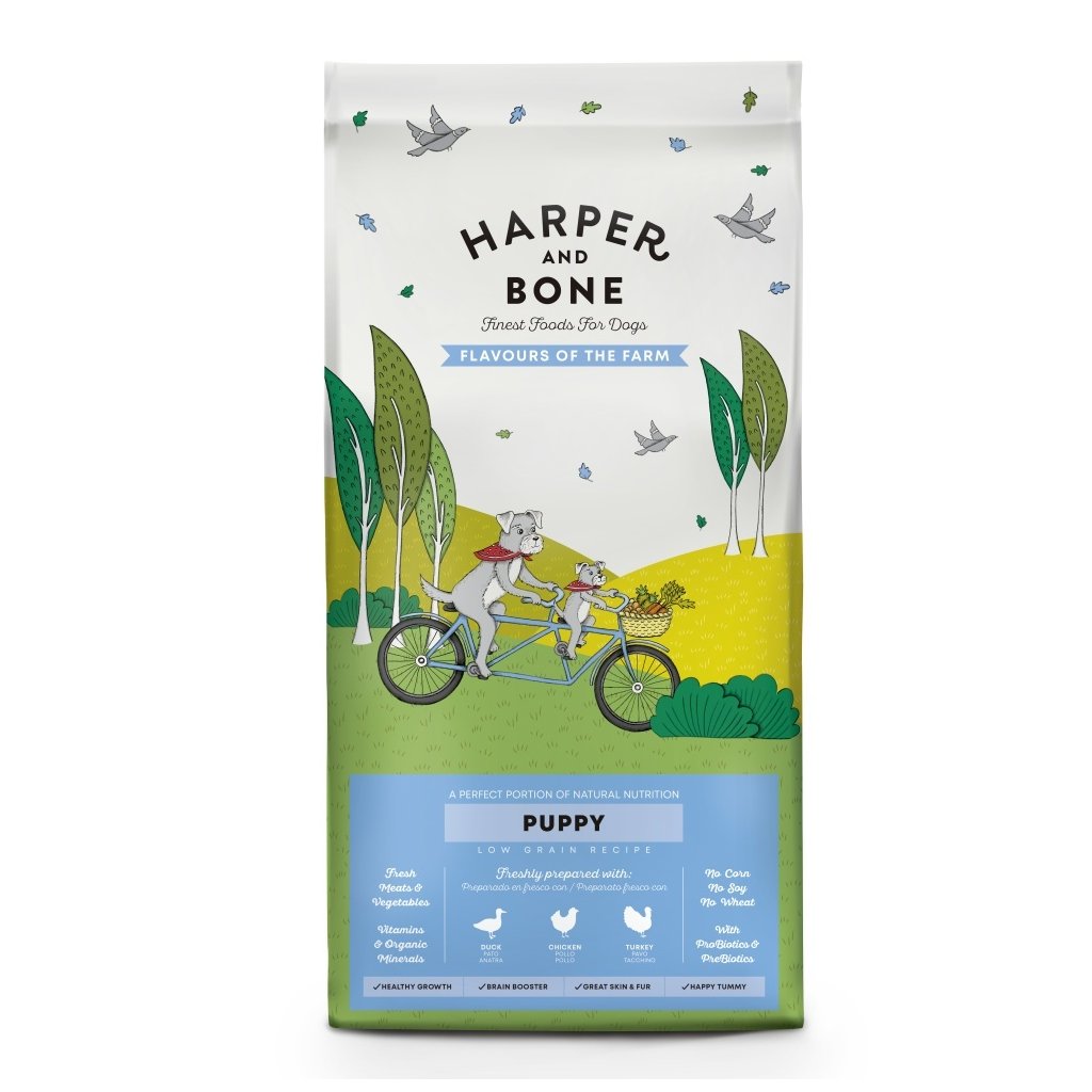 Harper and Bone Dog Puppy příchutě farmy složené pouze z nejkvalitnějších surovin s vysokým podílem masa, přídavkem superpotravin a čerstvé zeleniny, zaručující prospěšné živiny a přirozenou chuť pro zdravý, silný a šťastný růst.