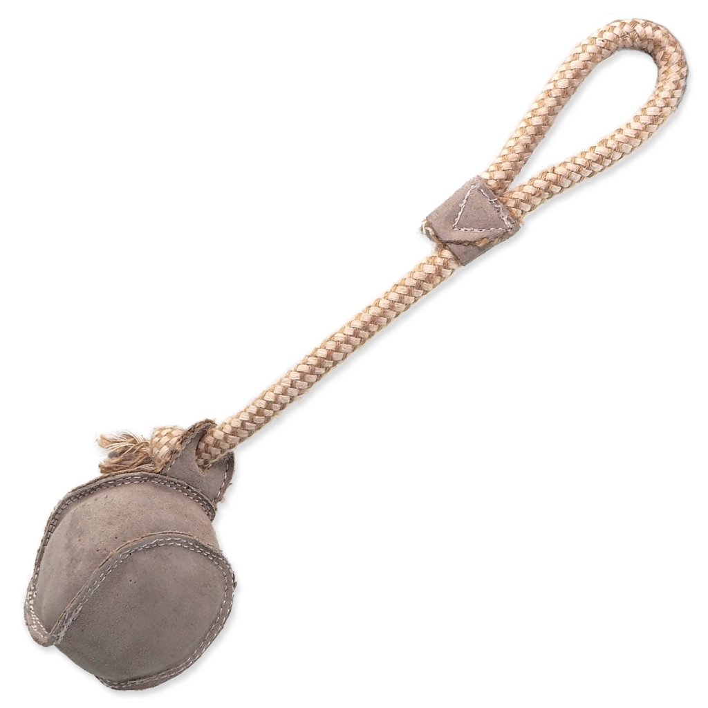 Tato hračka je navíc obzvláště odolná. Je ušitá ze dvou vrstev - spodní vrstva je vyrobena z juty a vrchní z kůže. Dvojitě prošité švy pevnou nití zaručují, že hračka vydrží i ty nejdivočejší hry.