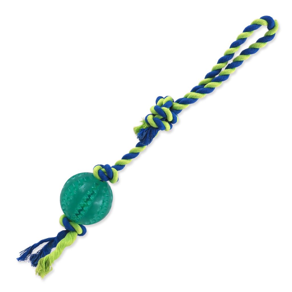 Provazové hračky s míčkem se speciálními drážkami, které pomáhají proti tvorbě zubního plaku a příjemně masírují dásně. Vhodné pro společné aktivity se psem jako je přetahování nebo aportování.