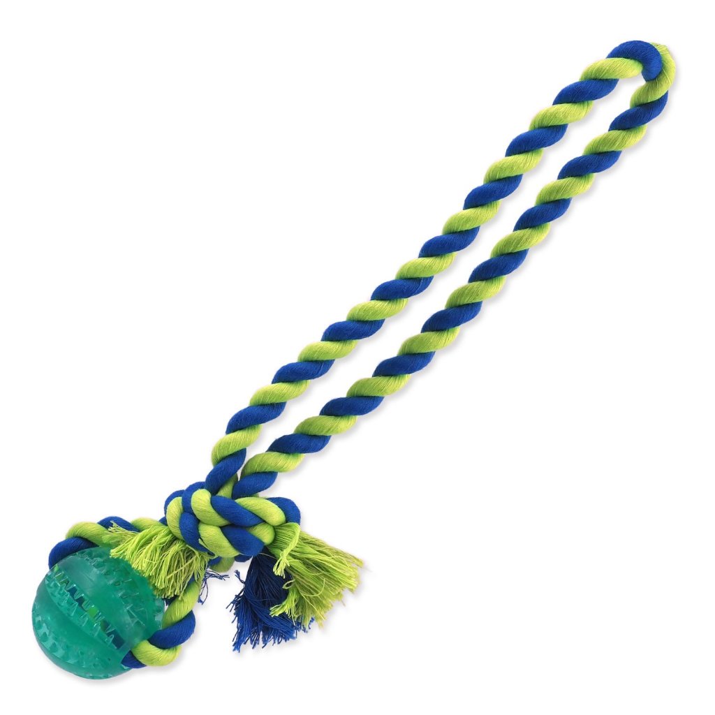 Provazové hračky s míčkem se speciálními drážkami, které pomáhají proti tvorbě zubního plaku a příjemně masírují dásně. Vhodné pro společné aktivity se psem jako je přetahování nebo aportování.