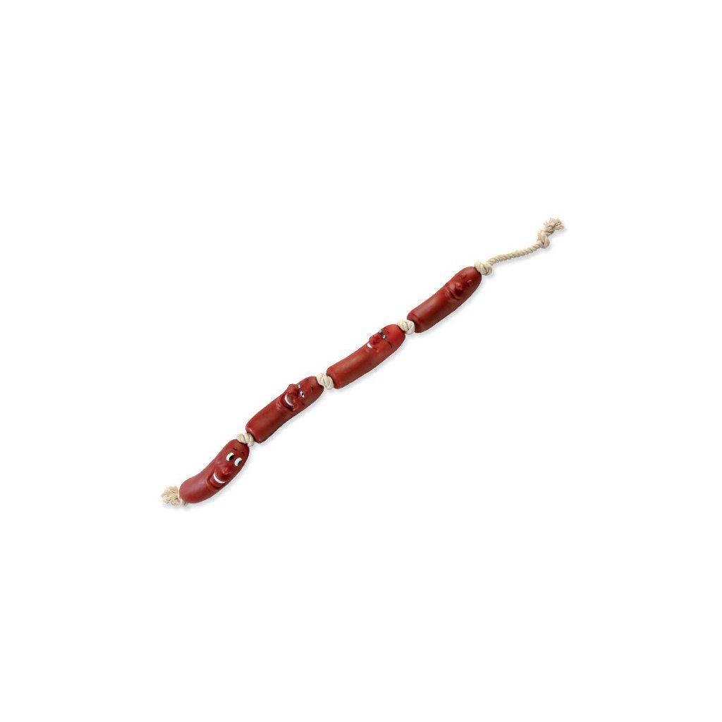 Hračka veselé klobásy na provaze pro psy. Skvělá hračka a přetahovadlo zároveň. Je vyrobena z vinylu.