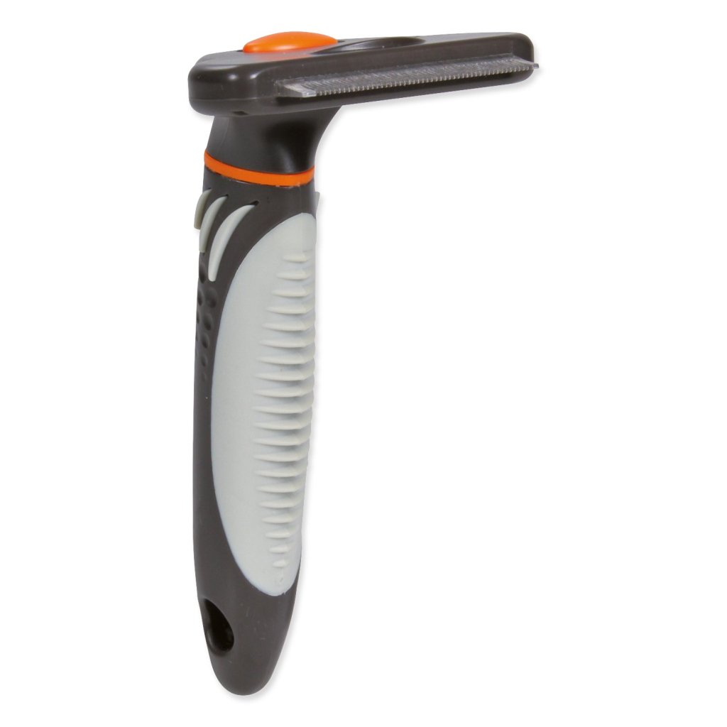 Hřeben pro psy s vyměnitelnou hlavou. Hlava se snadno vyměňuje pomocí snap mechanismu na rukojeti. Vhodný pro dlouhosrsté, krátkosrsté a hrubosrsté psy. Hřeben má plastovou rukojeť s protiskluzovou gumou. Efektivně odstraňuje odumřelou srst.