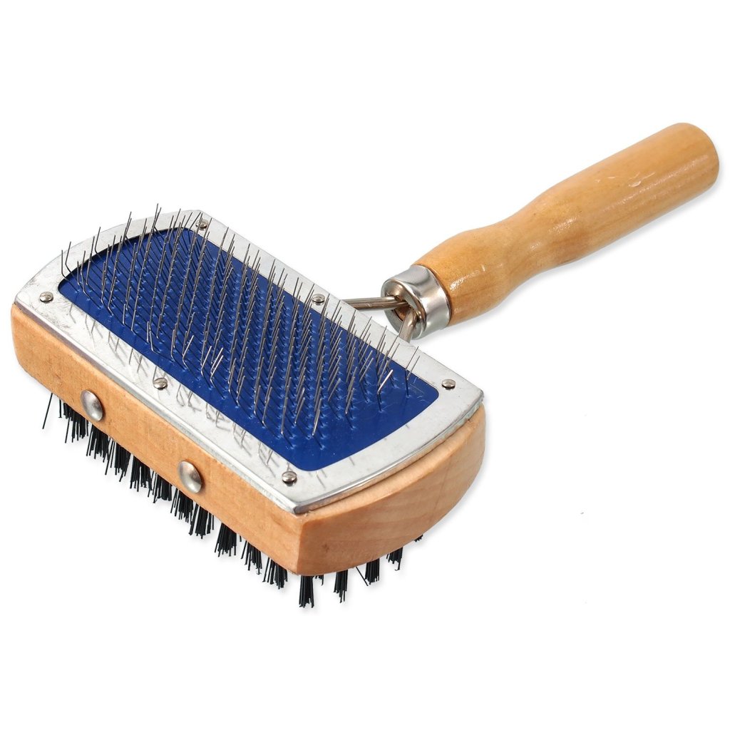 Dřevěný oboustranný kartáč pro malé a střední psy.