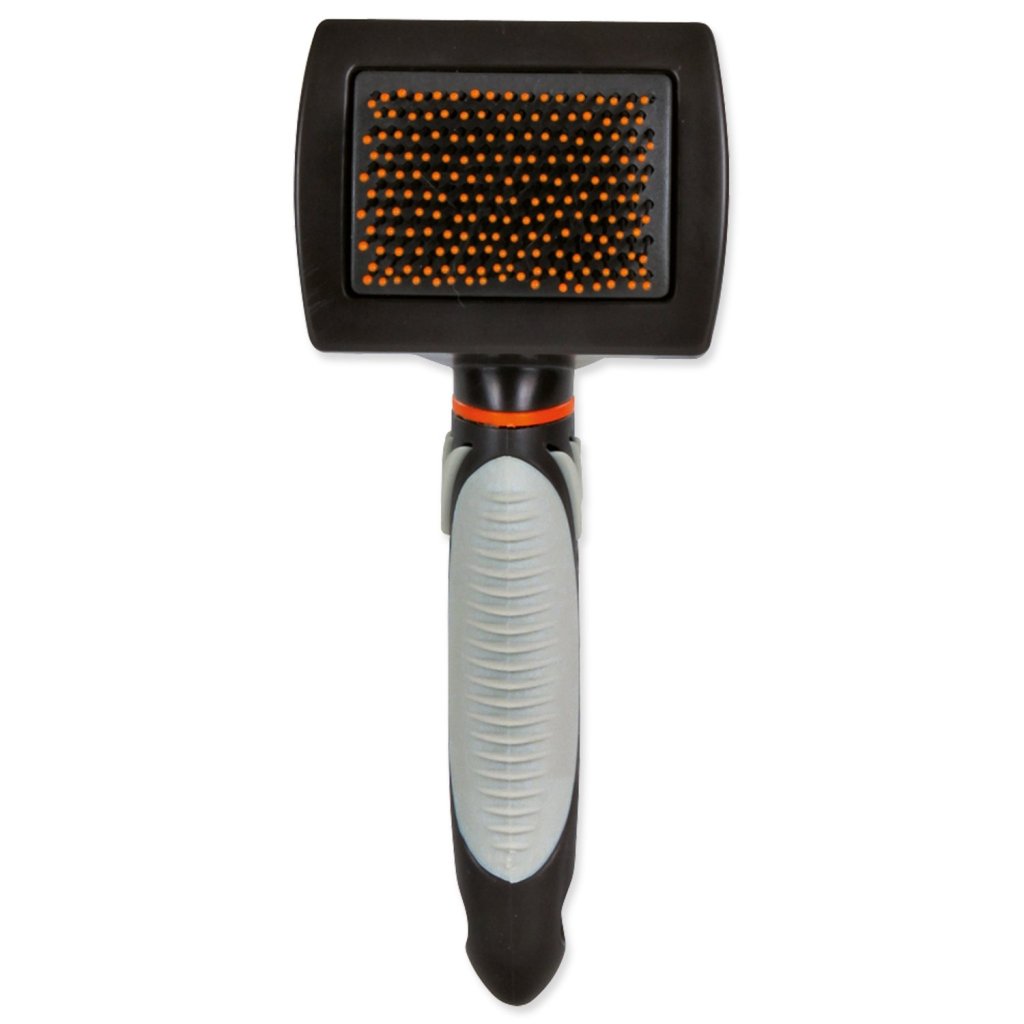 Plastový kartáč pro psy s extra měkkými štětinami s kuličkami. Vhodné pro krátkosrsté, dlouhosrsté a hrubosrsté psy. Kartáč má plastovou rukojeť s protiskluzovou gumou.