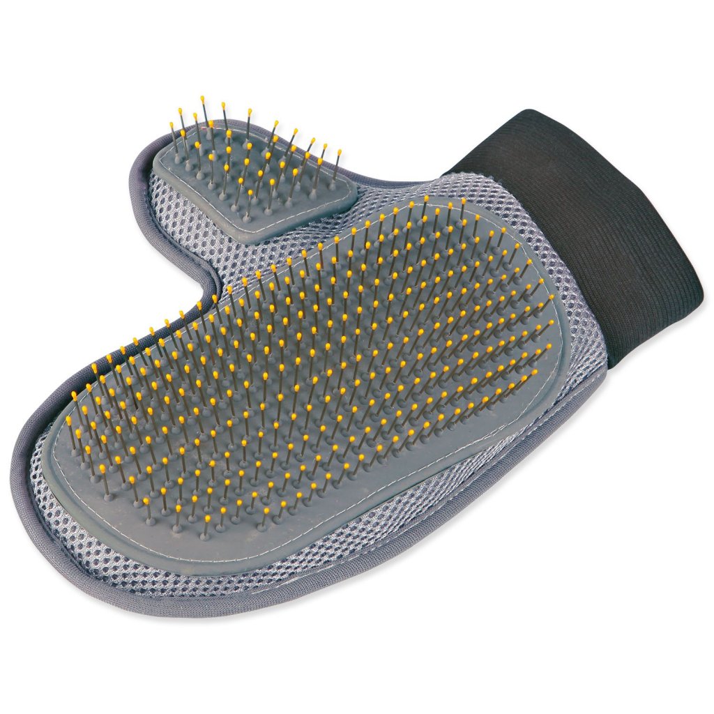 Vyčesávací rukavice s drátěnými zuby. Vhodný pomocník pro snadné vyčesávání vylínalé srsti koček a psů.