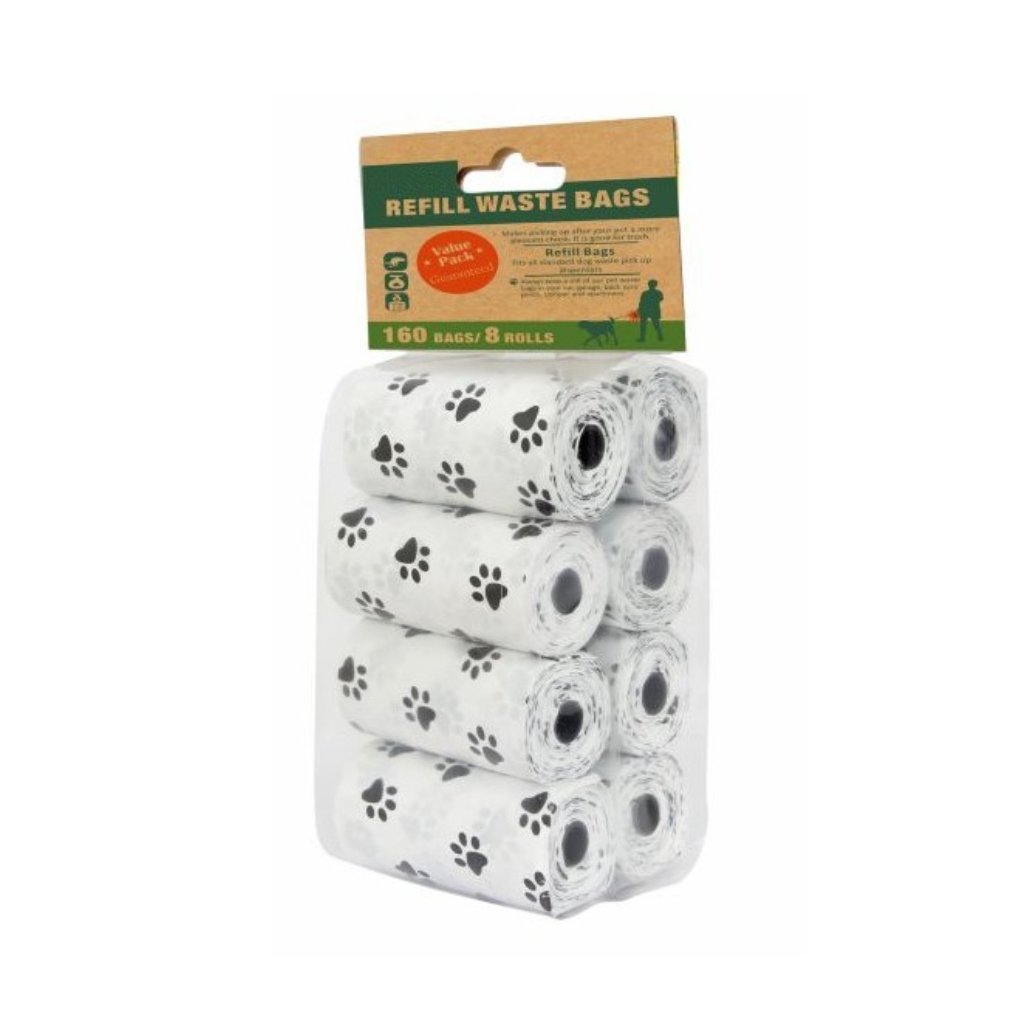 Náhradní sáčky na exkrementy s designem psích tlapek určené k úklidu v průběhu venčení.