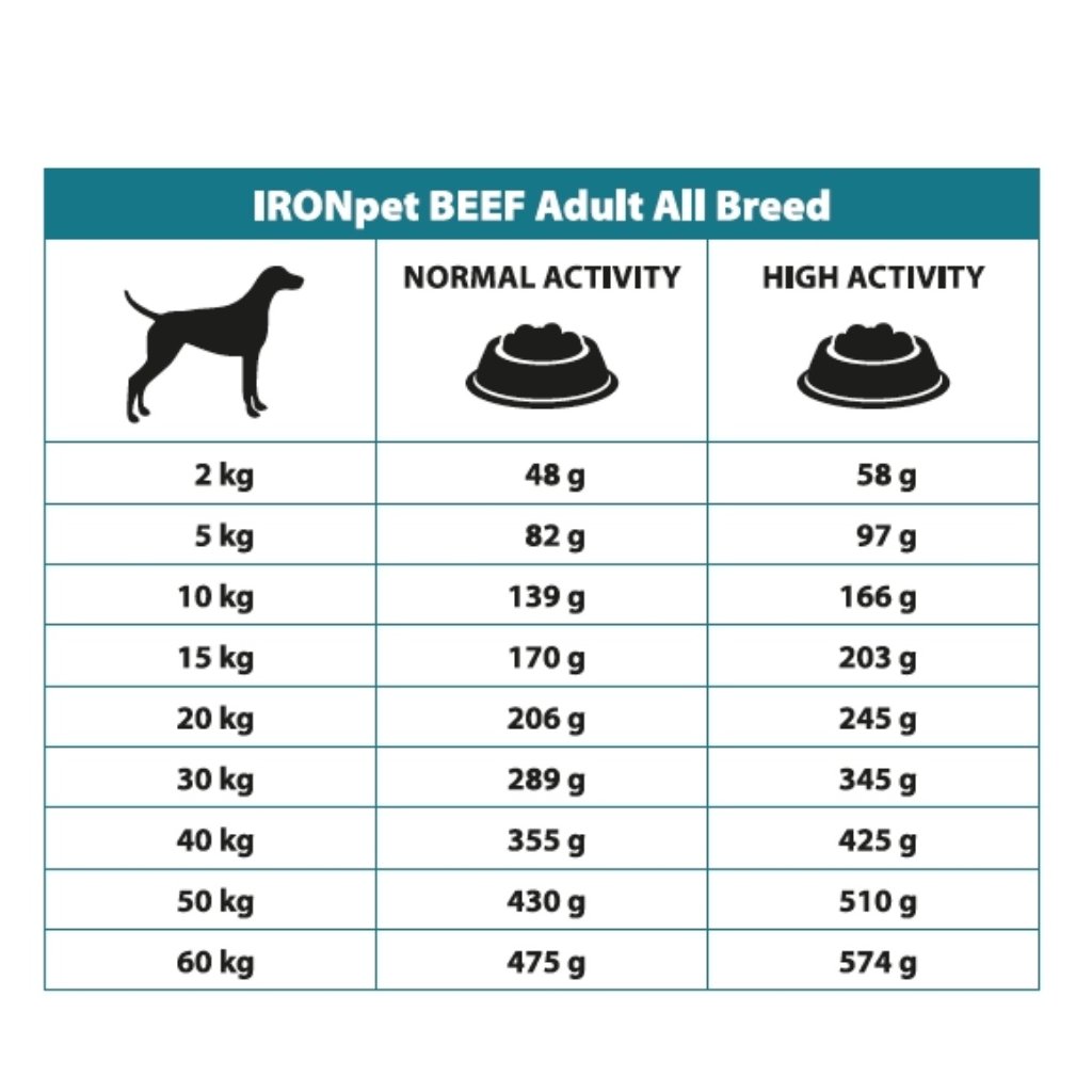 Jediný zdroj živočišných bílkovin s vyváženým poměrem bílkovin a tuku je použito hovězí maso - monoproteinová strava výrazně snižuje riziko vzniku intolerancí a potravinových alergií. IRONpet Dog Adult All Breed Beef (Hovězí) neobsahuje lepek a kuřecí maso je tedy hypoalergenní, snadno stravitelné a vhodné i pro psy s citlivým trávením.
