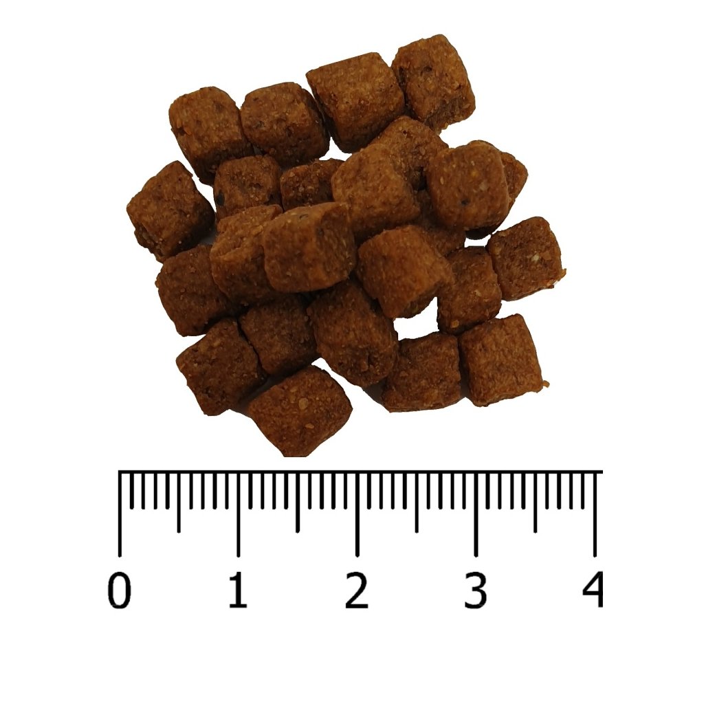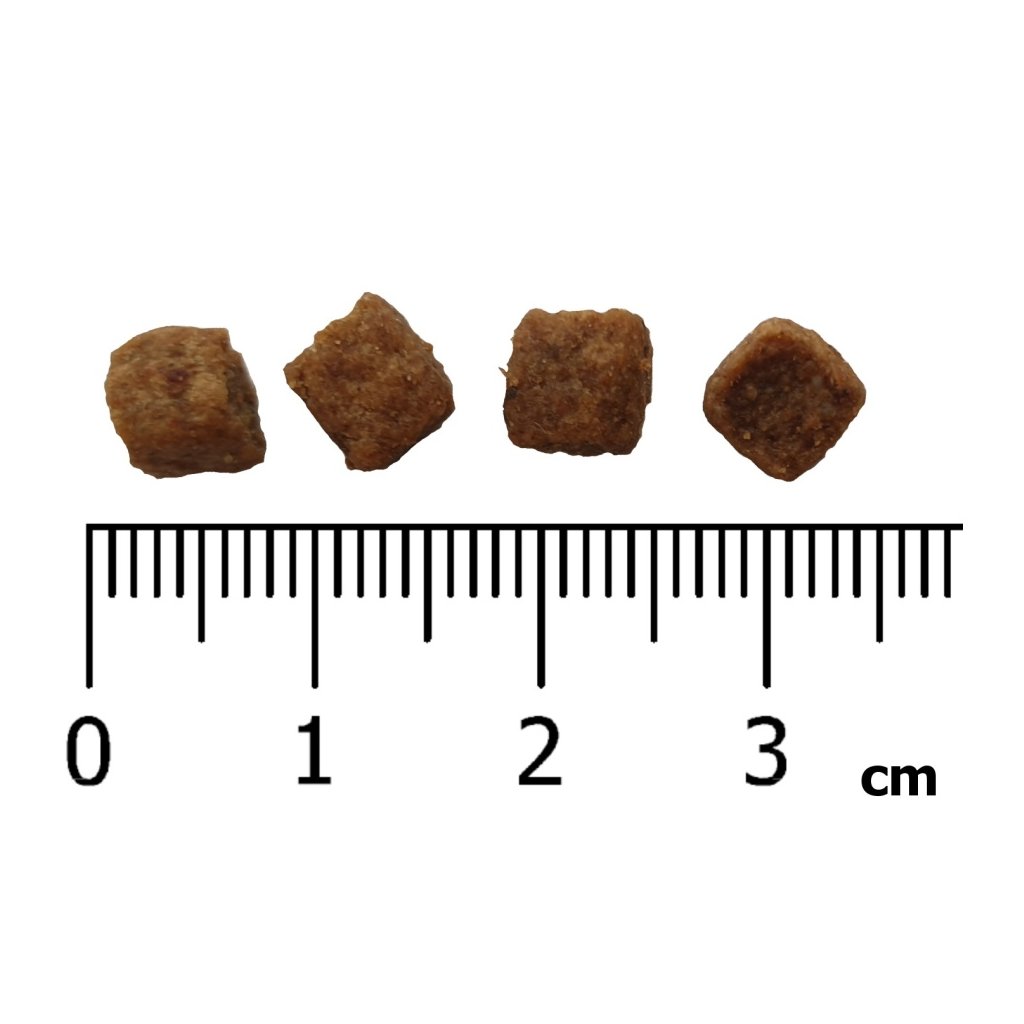 Analytické složky: Protein 28 %, hrubý tuk 17 %, hrubá vláknina 3,5 %, hrubý popel 7,5 %, vápník 1,2 %, fosfor 0,9 %, vlhkost 10 %.