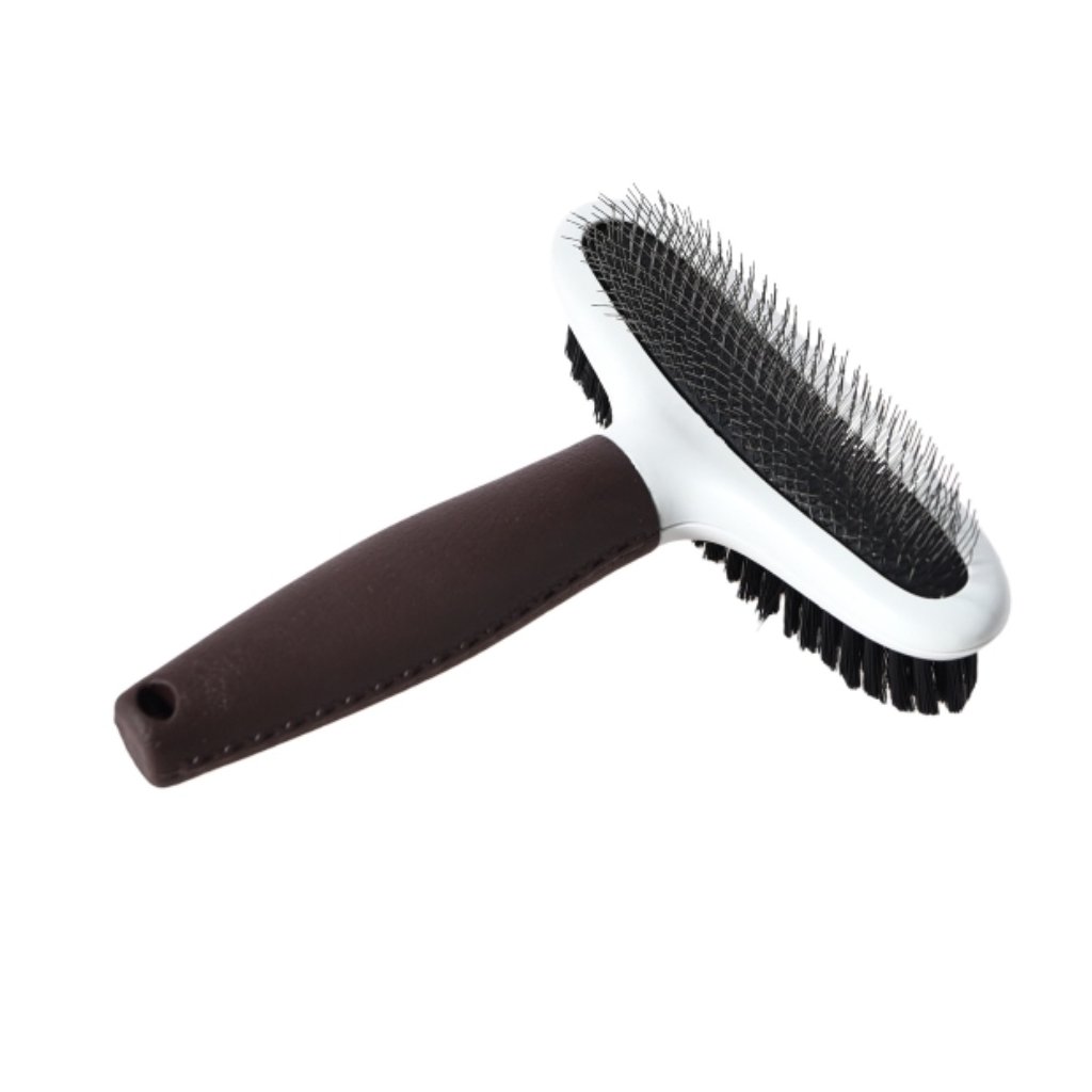 Oválný oboustranný úzký kartáč s jemnými zuby je vhodný pro všechny typy srsti je ideální pro každodenní čištění pro malá nebo středně velká zvířata.