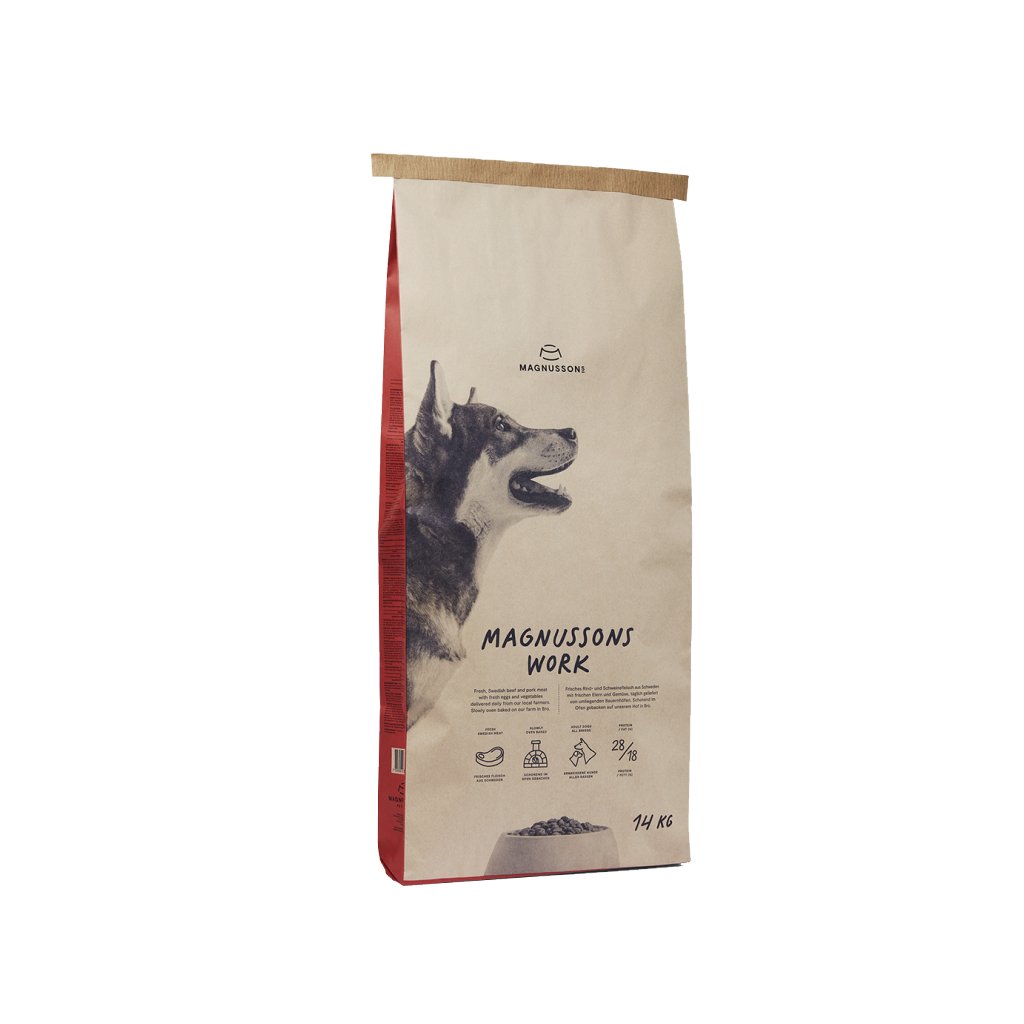 Čerstvé maso 50 % (čerstvé hovězí a vepřové maso), grahamová mouka, čerstvá vejce, rostlinný olej a tuk 6 % (za studena lisovaný řepkový olej), čerstvé mrkve, sušená bramborová dřeň.