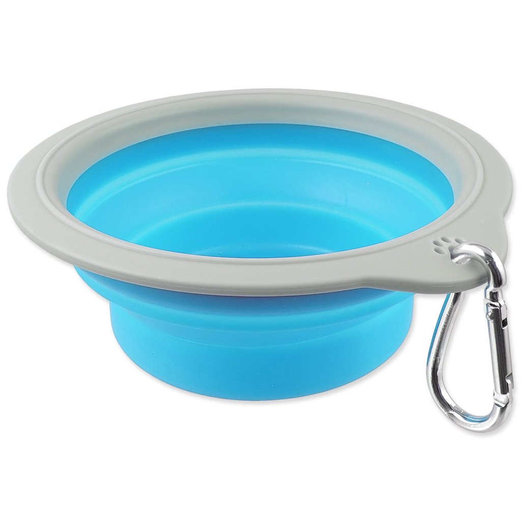 Cestovní miska skládací. Vyrobena z odolného materiálu silikonu, snadno složitelná do kompaktních rozměrů. Vhodná na cesty a dlouhé procházky. Nepřijímá pachy a snadno se udržuje. Odolná proti nárazům a mrazu. Obsahuje karabinu pro uchycení na batoh nebo oblečení.