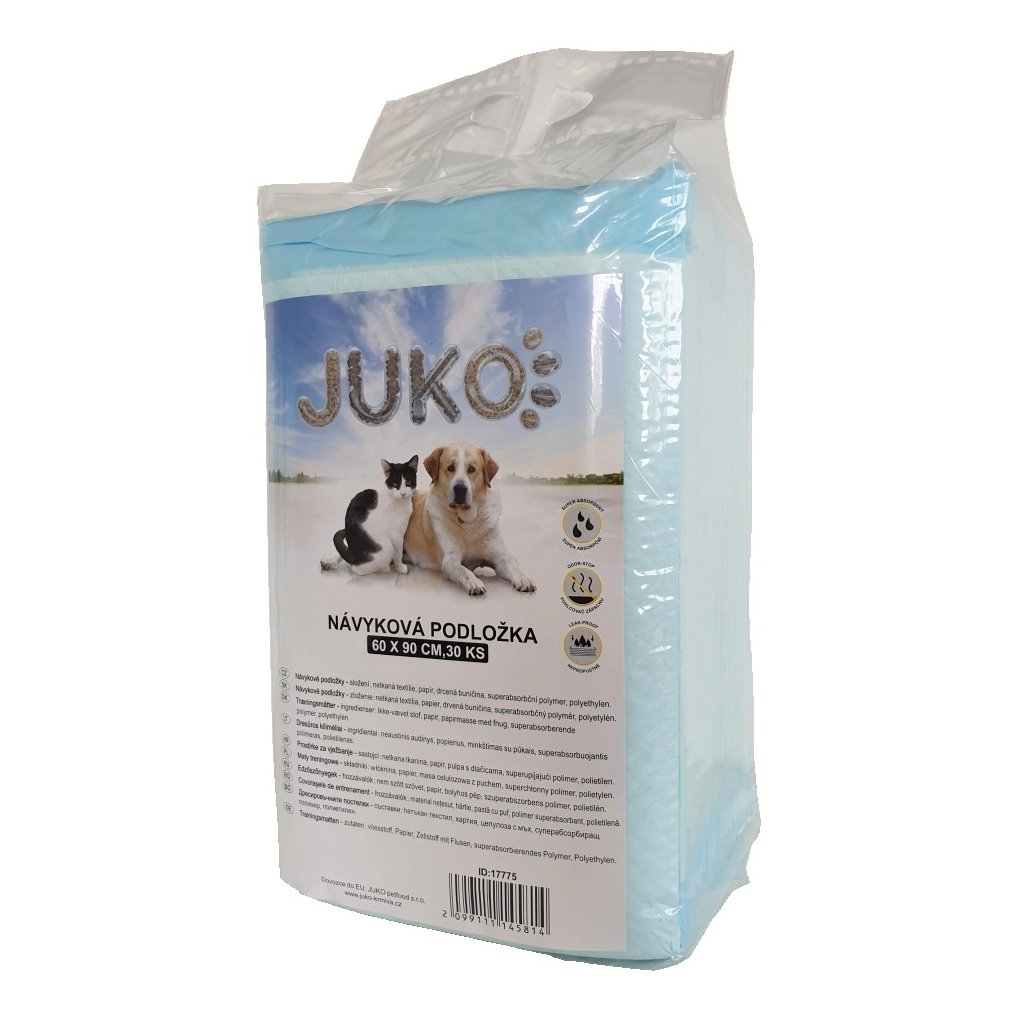 Podložky JUKO lze také použít jako toaletu pro dospělé psy, kteří nemohou pravidelně ven. Ideální také jako ochrana míst, kde zvíře často leží, nebo nemocné či psí seniory, kdy je častá inkontinence. Vhodné při cestování jako vložka do přepravních boxů.