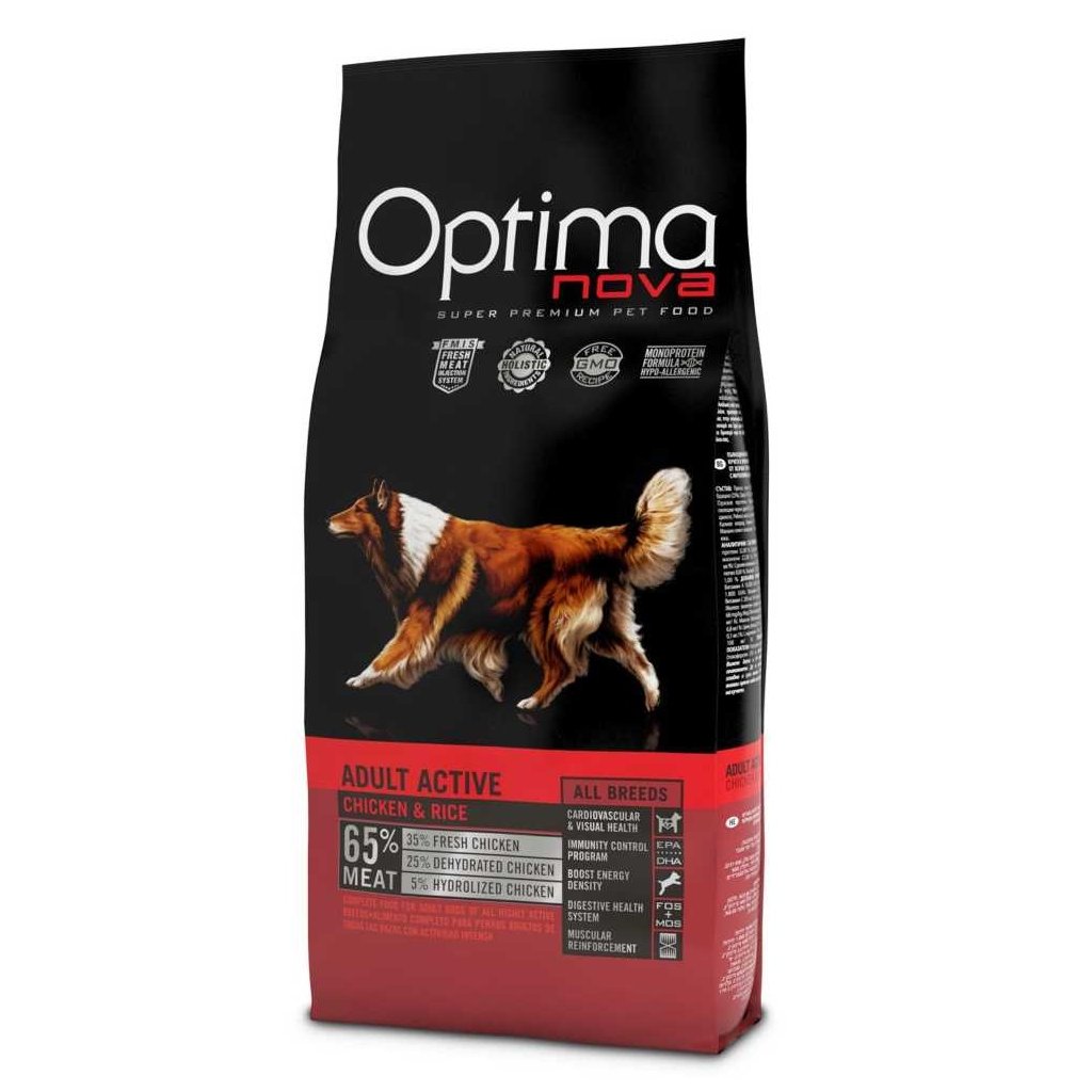 OPTIMAnova Dog Adult Active složené z kvalitních bílkovin a lehce stravitelných sacharidů v kombinaci s prospěšnými tuky. Krmivo obohacené o vitamíny, minerální látky a antioxidanty.