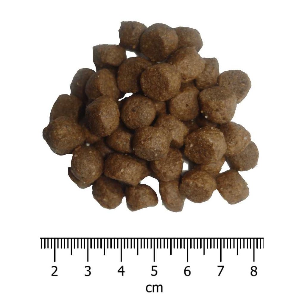 Analytické složky: Hrubý protein 30 %, hrubý olej a tuky 19 %, EPA+DHA 530 mg / kg, hrubá vláknina 1,85 %, hrubý popel 8 %, vápník 1,35 %, fosfor 1,15 %.