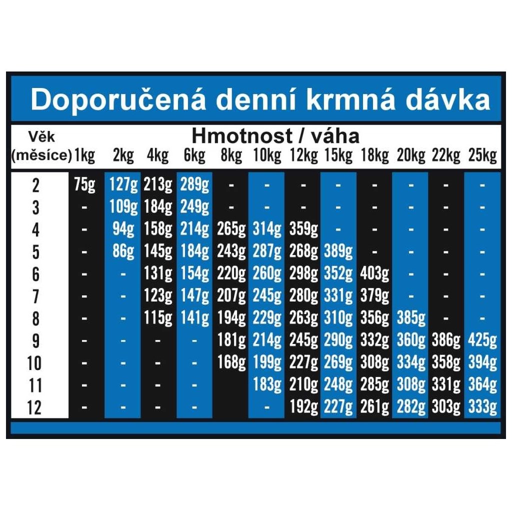 Snadno stravitelné sacharidy, pro zajištění podpory trávení. Immunity control program přínosný pro nervový, imunitní a kardiovaskulární systém. Obsah zinku, vitamínu A a biotinu napomáhá udržovat zdravou kůži a lesklou srst, správnou funkci imunitního systému a plicní a střevní sliznice. FOS + MOS s prebiotickými účinky přispívá ke zdraví trávícího traktu. Rovnováha minerálních látek a vitamínů podporují maximální růst štěněte a optimální vývoj kostí a svalů. Esenciální mastné kyseliny pro správnou funkci mozku, brání také opotřebení nervového systému.