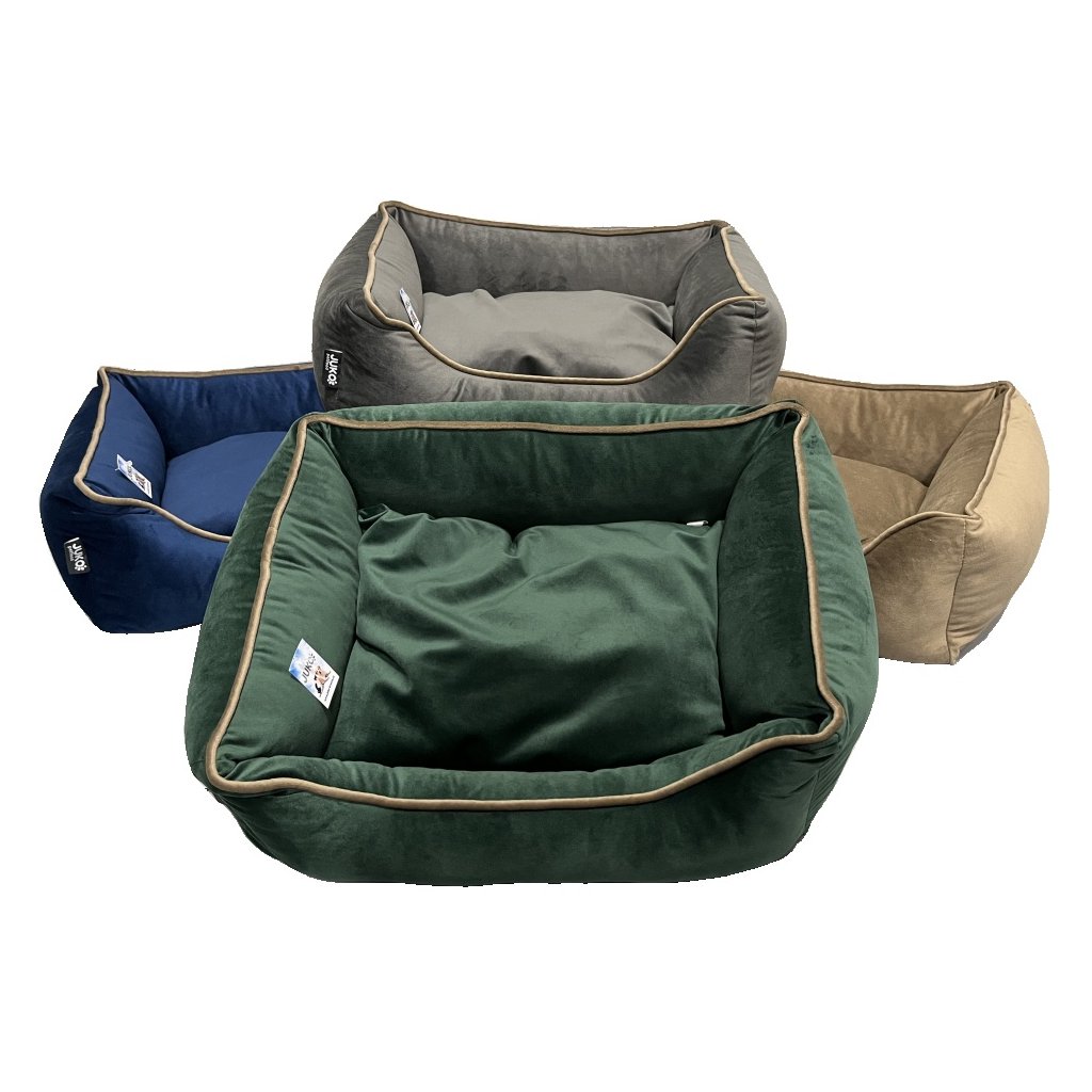 Luxusní sametový pelíšek pro psy s polstrovaným okrajem.