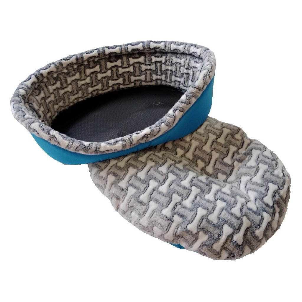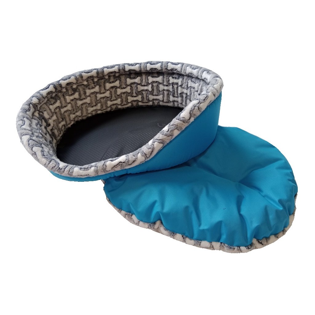 Pelíšek pro psy s vyjímatelným polštářkem ze 2 druhů látek.
