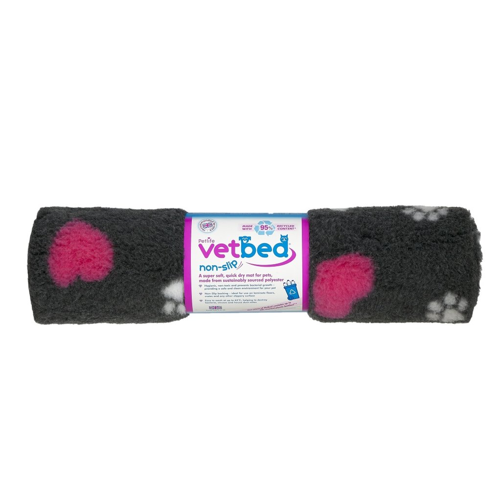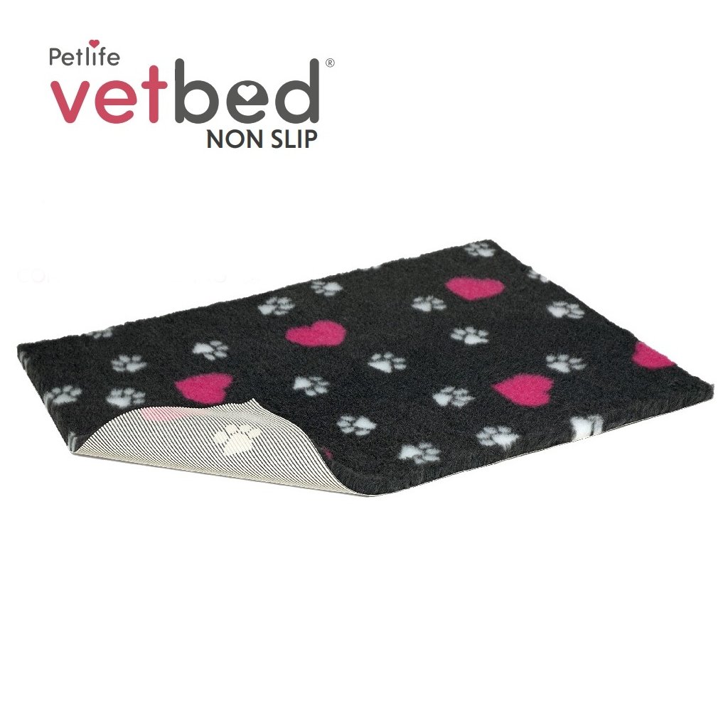 Vetbed protiskluz / Drybed grafitová srdce a packy DELUXE 75 x 50 cm, vlas 30 mm
