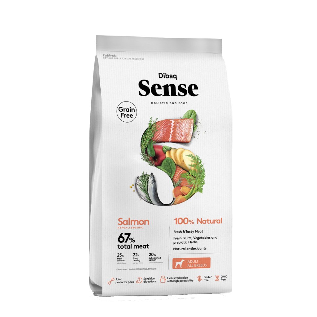 Krmivo s čerstvým lososem a sleděm z čerstvé řady Sense, která následuje nejmodernější trend ve výživě psů – vysoký obsah čerstvého masa, ovoce a zeleniny. Je to směr, kterým se začíná ubírat celé odvětví. Čerstvost znamená vyšší stravitelnost a i lepší chuť krmiva.